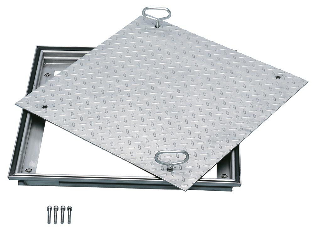 ∙ Hergestellt aus verzinktem Stahl (Aluminium oder Edelstahl auf Anfrage) ∙ Deckelplatte wahlweise aus Riffelblech oder aus frei wählbare Oberflächen ∙ Durch eingelegte EPD-Dichtung tagwasser- und gerungsdicht ∙ Vierfachverschraubung (Mehrfachverschraubung größenabhängig) ∙ Abdeckungen für frei wählbare Oberfläche durch konische Form kein Verklemmen ∙ Mitgeliefert wird ein Satz Aushebegriffe, wobei einer der Griffe als Ausdruckgriff ausgebildet ist