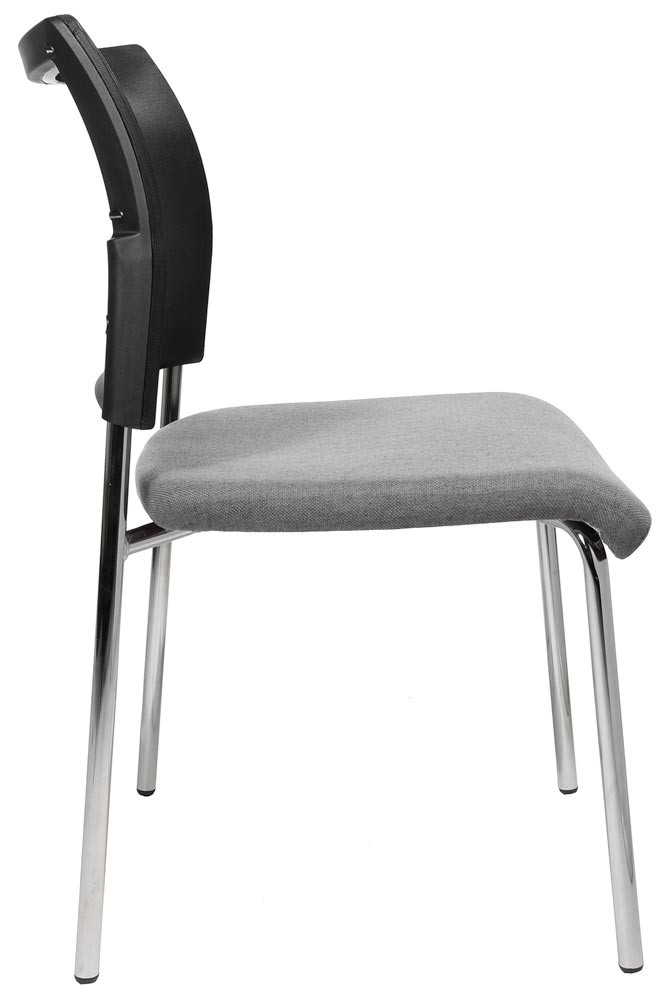 · Ergonomisch geformte Rückenlehne mit atmungsaktiver Netzbespannung und schwarzem Kunststoffrahmen · Bequem gepolsteter Muldensitz mit abgerundeter Vorderkante · Verchromtes Vierfußgestell aus Rundrohr Ø 22 mm · Kunststoff-Fußgleiter · Stapelbar bis zu 2 Stühlen · Armlehnen optional gegen Aufpreis lieferbar · VE 2 Stück