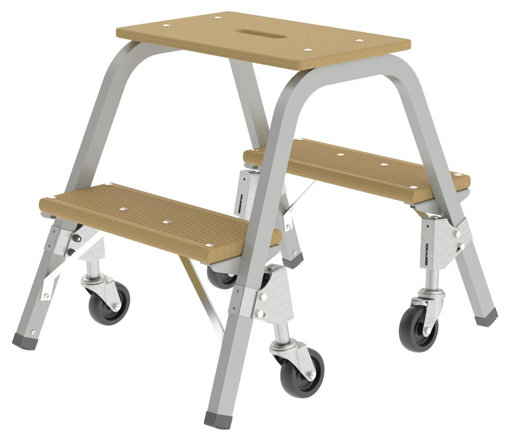 Stufentritt, Arbeitshöhe 2,4 m, Stufenanzahl 2, Gewicht 11,1 kg, mit 4 Brems-Lenkrollen