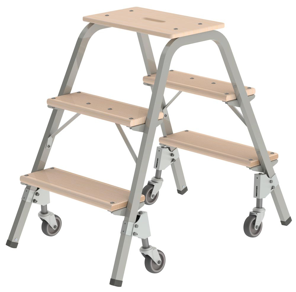 Stufentritt, Arbeitshöhe 2,6 m, 3 Stufen, Gewicht 14,6 kg, mit 4 Brems-Lenkrollen