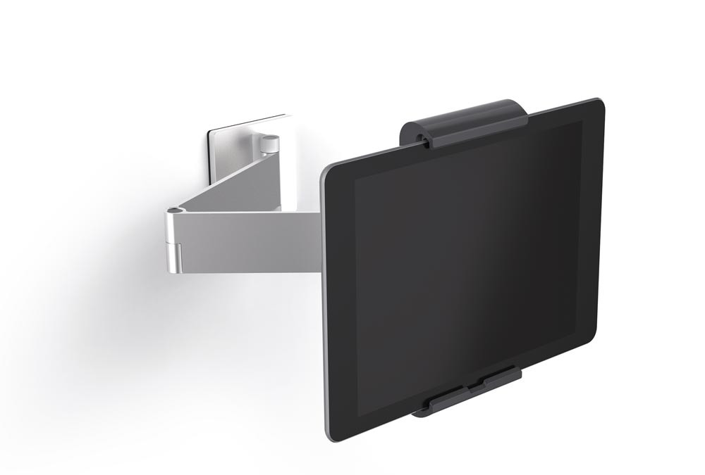 Tablet-Halter, Wandhalter mit Schwenkarm, für Tablet-Größen von 7-13 Zoll, BxTxH 95x170x225 mm, metallic silber