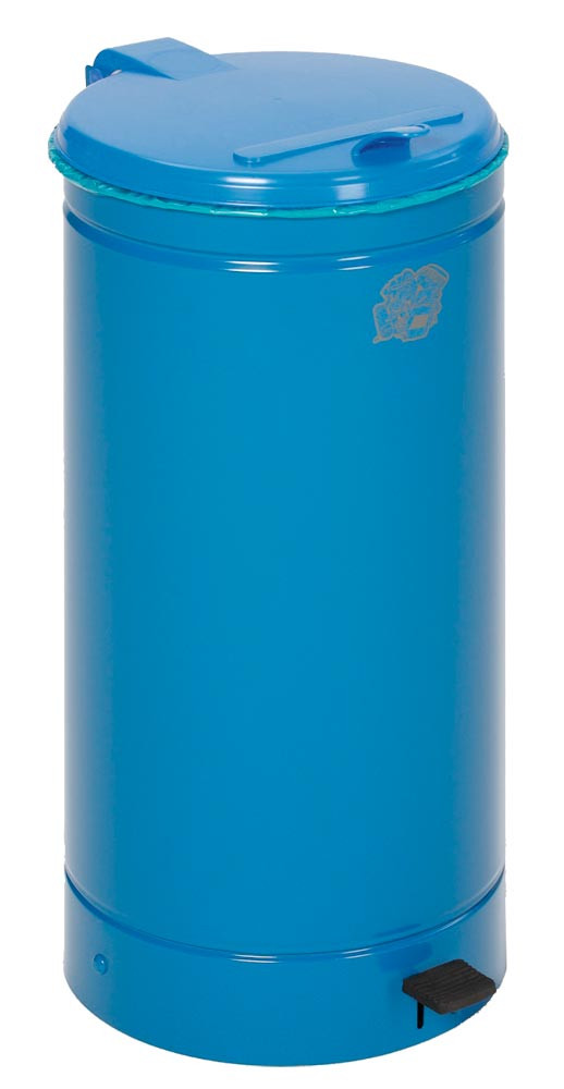 Tretabfallsammler, fußbetätigt, Stahlblech, Volumen 60 Liter, Durchm. 450 mm, Höhe 700 mm, Behälter enzianblau, Deckel blau