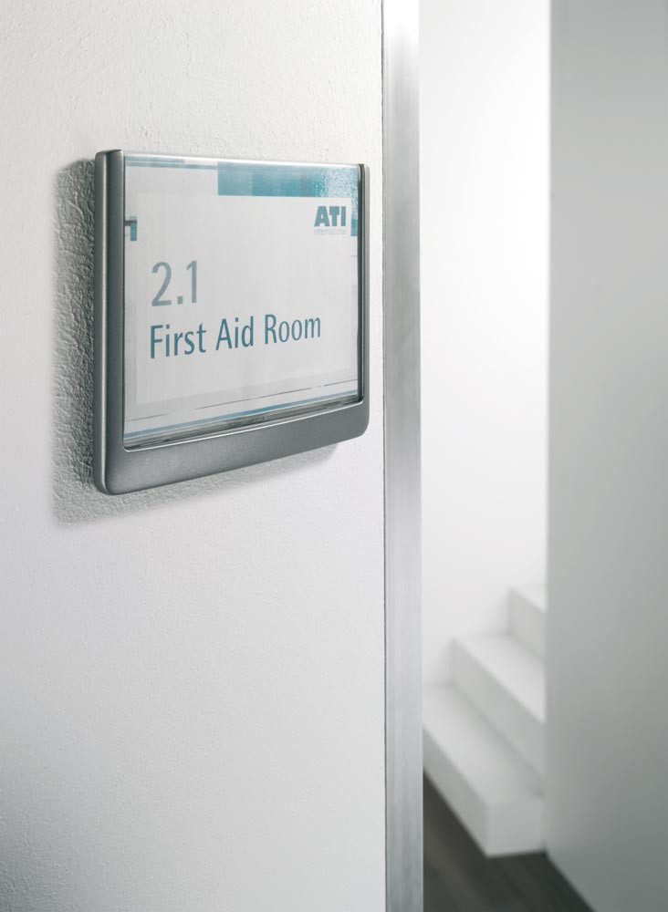 ∙ Schilder zum Anschrauben und Ankleben, inkl. Montageset ∙ Leichtes Austauschen der Sichteinlagen