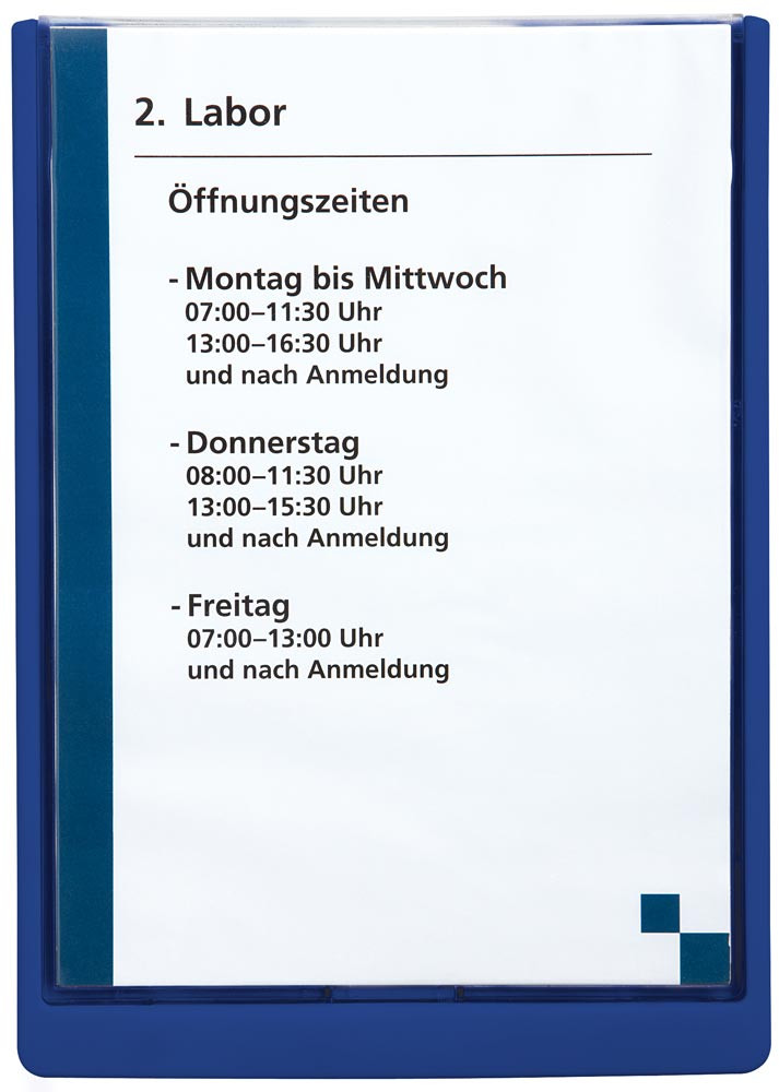Türschild aus ABS, Sichtfenster Acryl, Klick-Funktion, BxH 210x297 mm (DIN A4), Rahmenfarbe blau, VE 1 Stück, Mindestbestellmenge 3 Stück