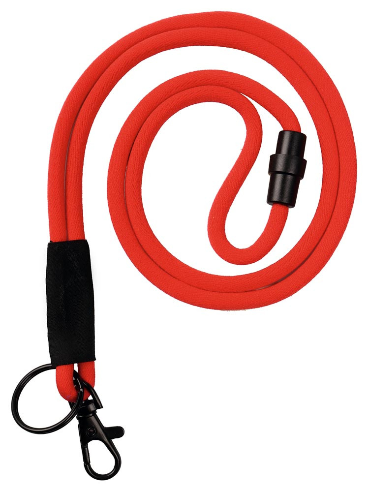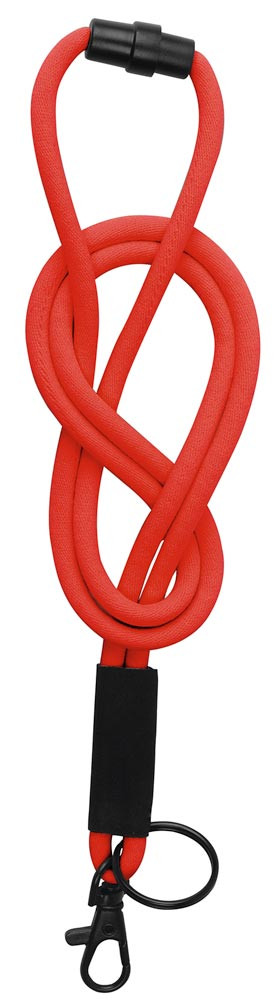 · Rundes Polyesterband mit Softhaptik · Bandlänge 460 mm · Mit Nichterstickungsverschluss · Mit Schlüsselring Ø 25 mm und Karabinerhaken · VE 30 Stück