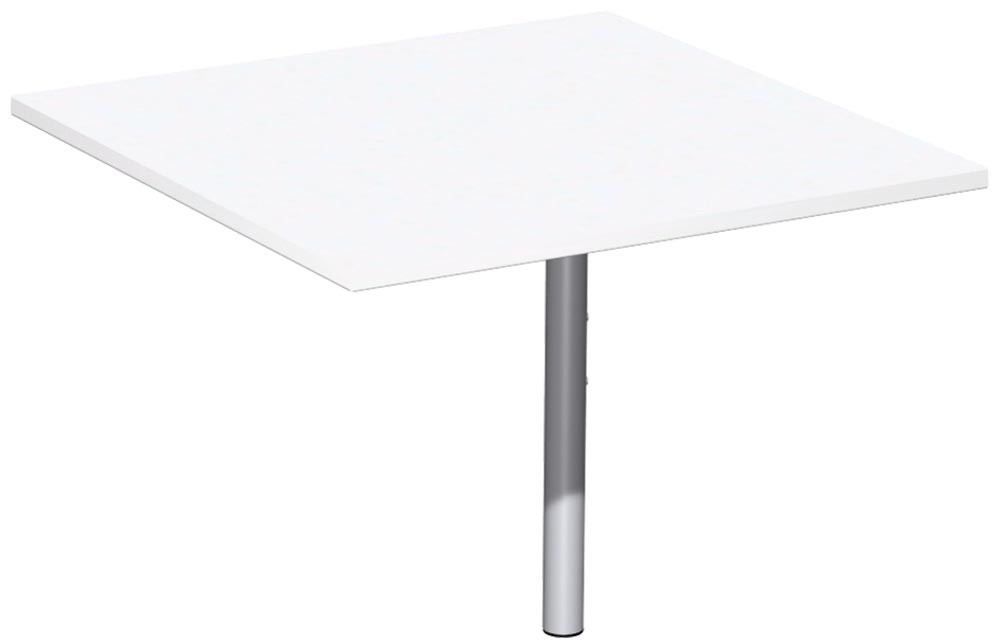 Verkettungsplatte, Viereck 90 Grad, BxTxH 800x800x680-800 mm, mit Stützfuß, höhenverstellbar, Platte weiß, Rundrohrgestell silber