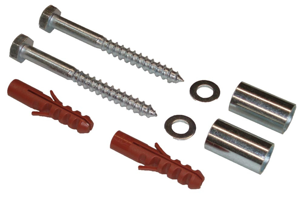 Wandbefestigungs-Set, best. aus je 2xSchrauben, 10x100 mm, Dübel S12, U-Scheiben M10, Distanzstücke, 20x36 mm