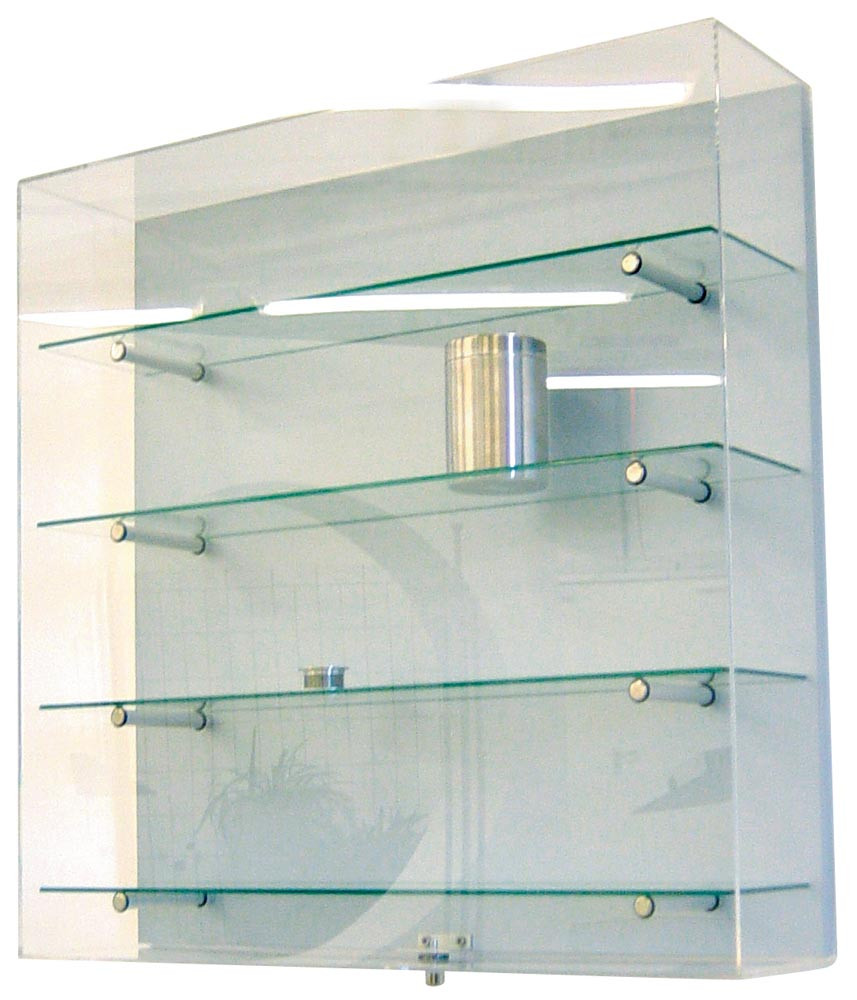 Wandvitrine, Ganzglas, Sichtböden oben/unten Dekor-Silber, 4 Dickglasböden, BxTxH 800x200x800 mm