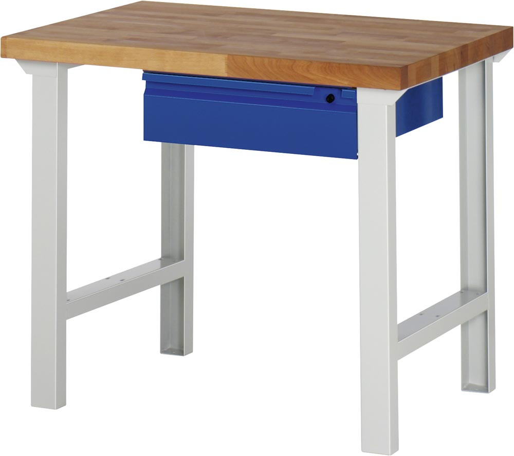 Werkbank, BxTxH 1000x700x840 mm, Platte Buche 40 mm, 1 Hängeschublade 150 mm, RAL 7035/5010 E1985321