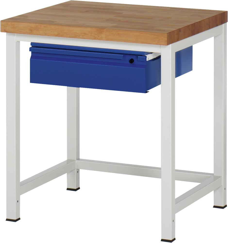 Werkbank, BxTxH 750x700x840 mm, Platte Buche 40 mm, 1 Schublade 150 mm, RAL 7035/5010 E1978780
