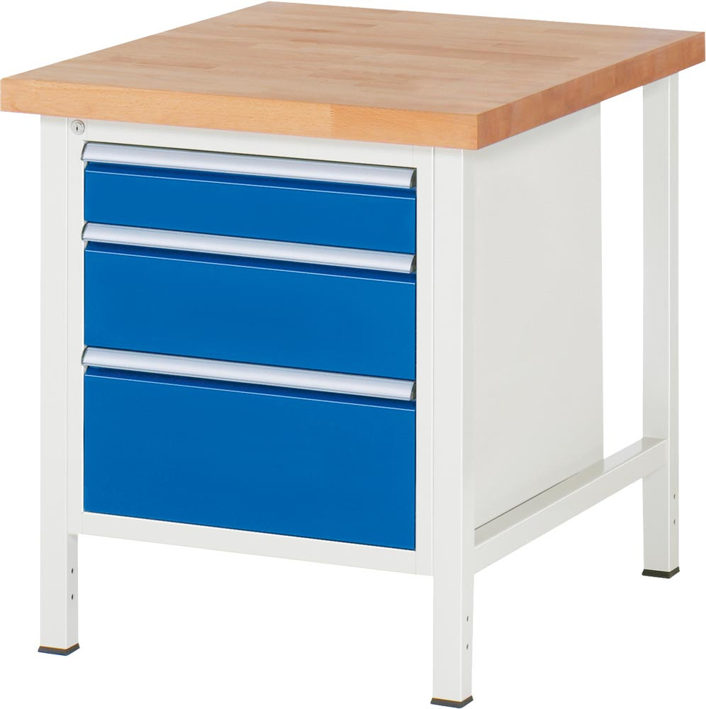 Werkbank, BxTxH 750x900x840-1040 mm, 3 Schubladen 120/180/240 mm, Platte Buche 40 mm, RAL 7035/5010