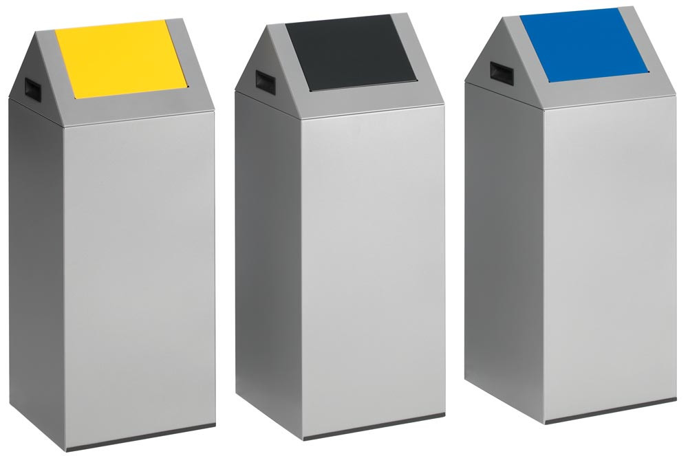 ∙ TÜV-zertifizierter selbstlöschender Wertstoffsammler ∙ Korpus Stahlblech verzinkt und pulverbeschichtet ∙ Kopfteil mit Schwingdeckel und Griffmulden abnehmbar ∙ Klemmring zur Befestigung vom Abfallsack ∙ Bodenschonender Kantenschutz