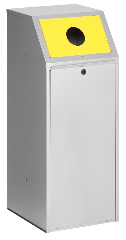 Wertstoffsammler Vol. 69 l, BxTxH 400x400x1000 mm, Einwurf rund (für Flaschen, Dosen, etc.) RAL 1023 verkehrsgelb, Korpus silber, inkl. Inneneinsatz E1967167